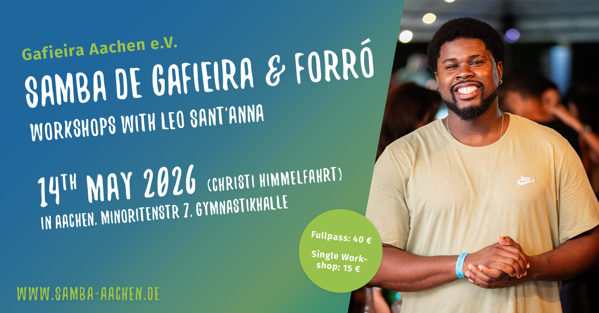 Wir freuen uns sehr, LĂ©o SantâAnna zu unseren Christi-Himmelfahrt-Workshops begrĂŒĂen zu dĂŒrfen! Mit ĂŒber 13 Jahren Erfahrung im Unterrichten von Samba de Gafieira und ForrĂł â und einer eigenen Tanzschule in Vila Velha (Brasilien) â bringt er tiefes Fachwissen und echte Leidenschaft mit. FĂŒr LĂ©o geht es beim Tanzen um mehr als Schritte: Technik und MusikalitĂ€t ja, aber vor allem die Verbindung zwischen den Partnern und das GefĂŒhl, das Tanz im Alltag schenken kann. đđș